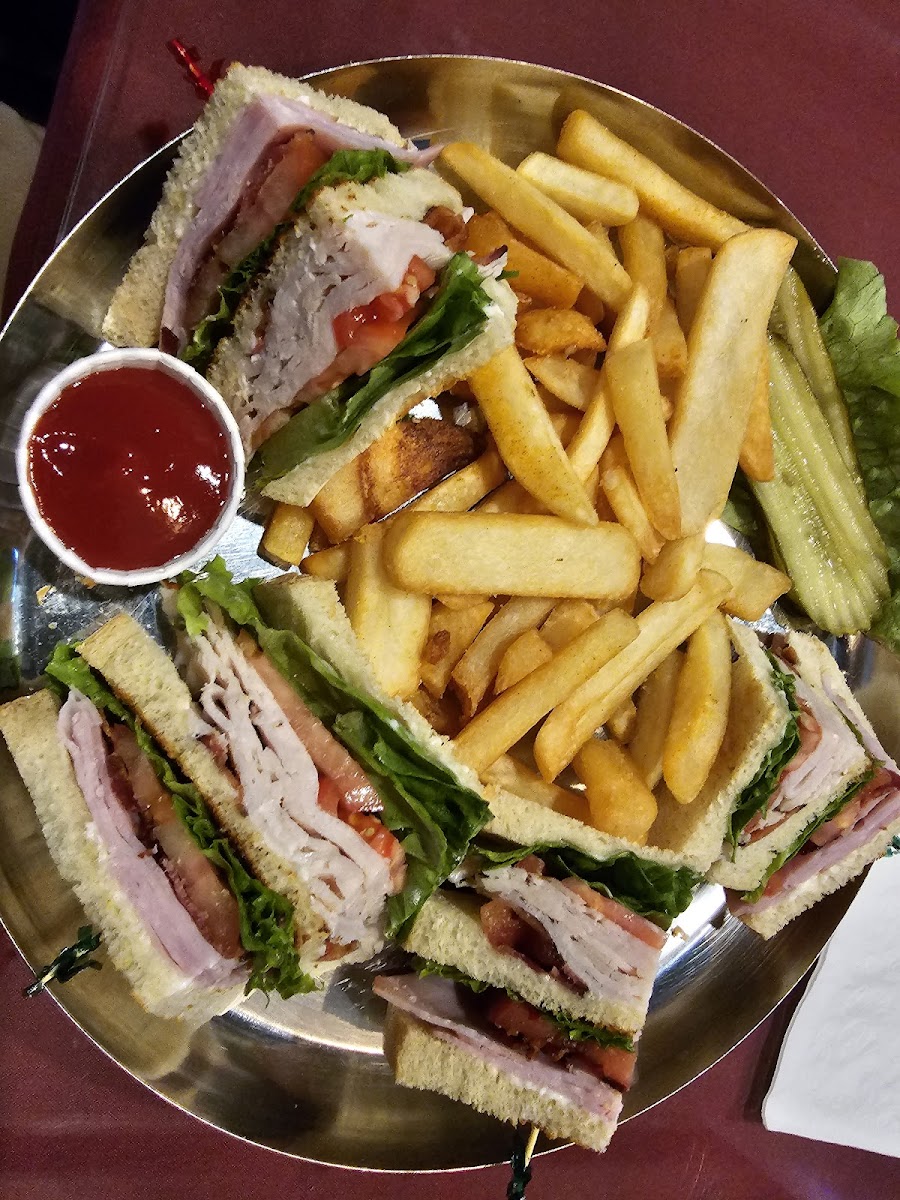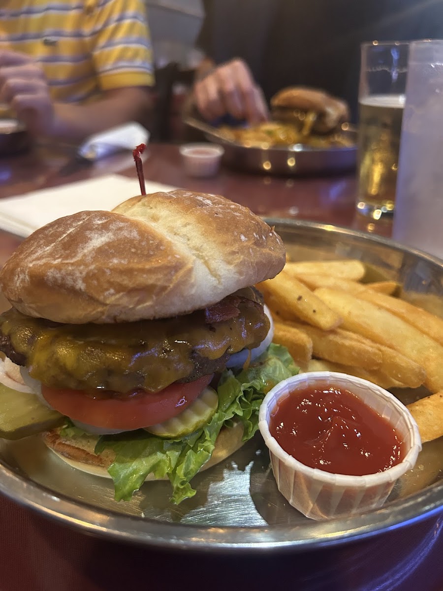 We stopped in for a light dinner. It definitely wasn't light. I got a BLT, and it was a multi layer BLT. It was delicious. My husband got the French dip, and his was huge as well. The steak fries are the best. The service was great and the staff was so nice. I originally thought the prices were high, but after seeing the size of the portions, the price was fine. It was a little loud inside, but it was one huge group. Definitely go here if you are hungry.